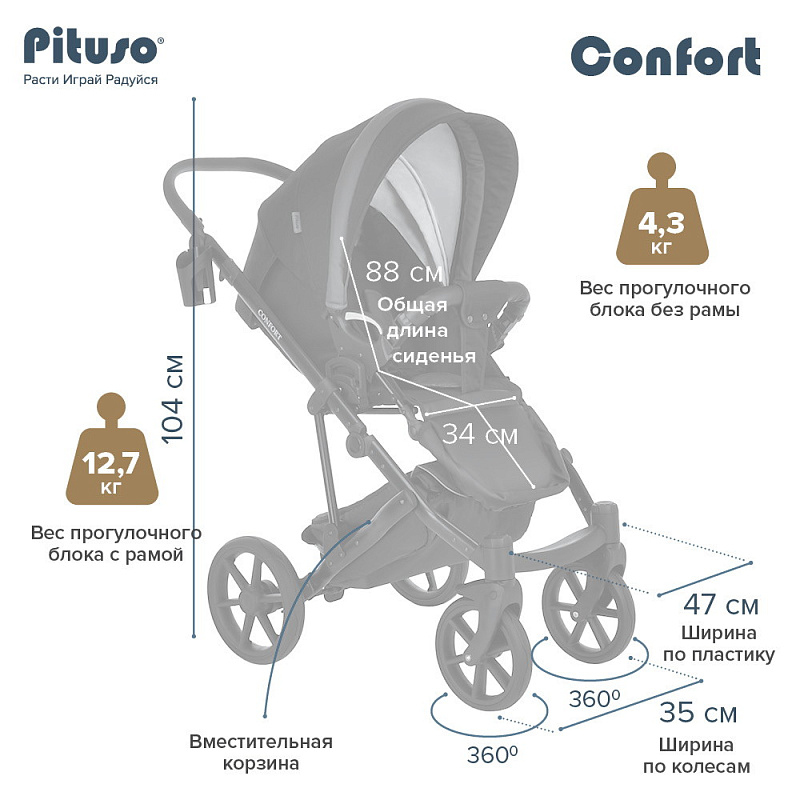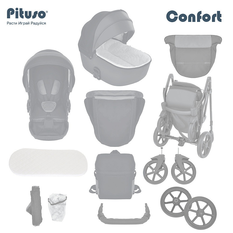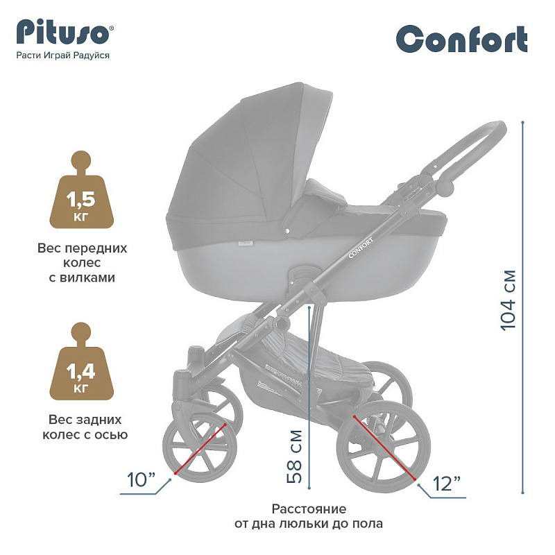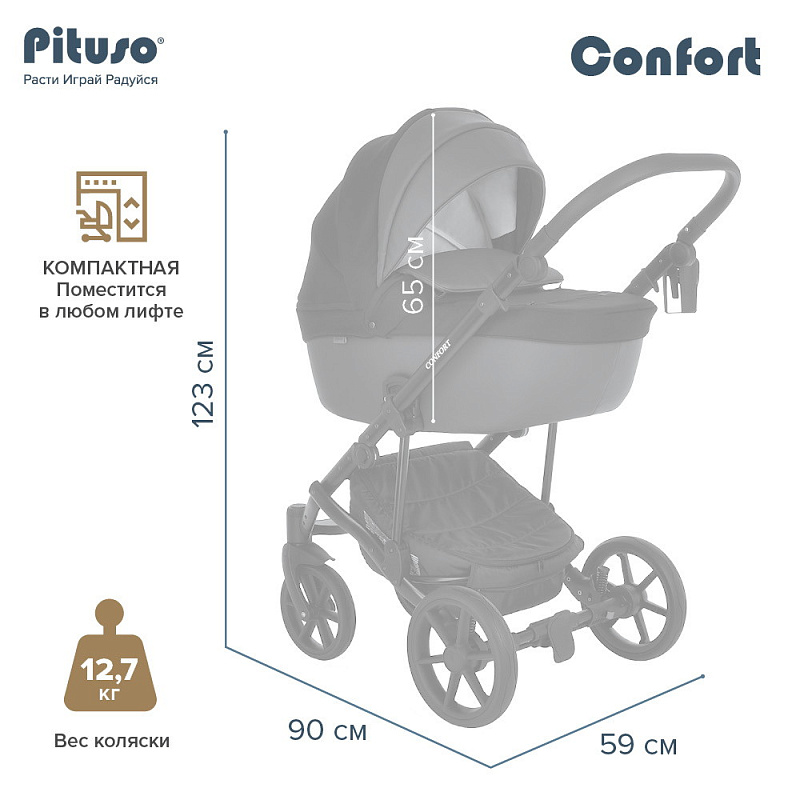 Детская коляска Pituso Confort Plus 2 в 1 03 Черный+Кожа Тем.Графит