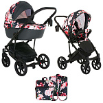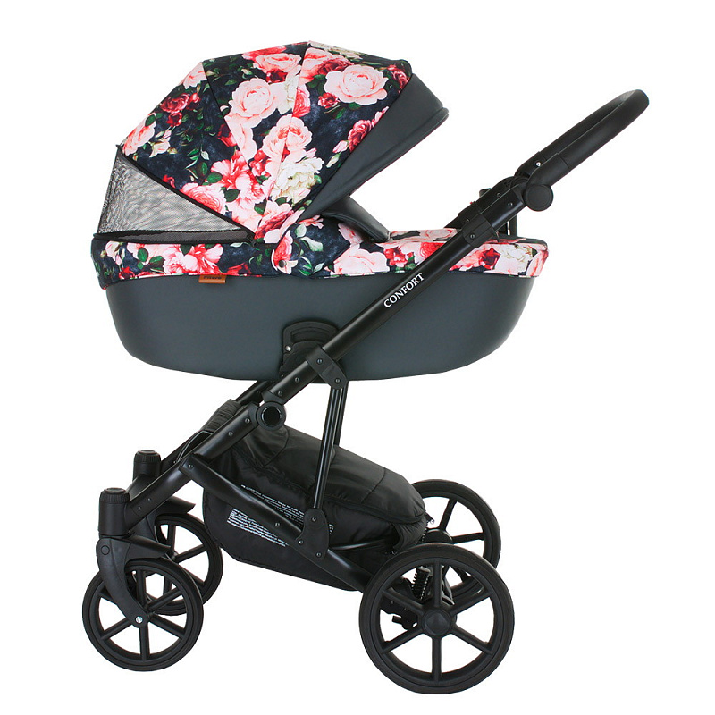 Детская коляска Pituso Confort Plus 2 в 1 27 Цветы+Кожа Тем.Графит
