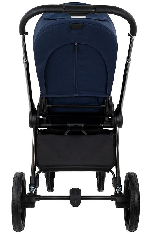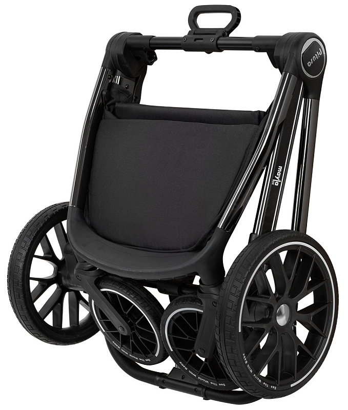 Рама из облегченного алюминия с покрытием Black Chrome имеет повышенную износостойкость и компактно складывается по типу "книжки" вместе с прогулочным блоком.