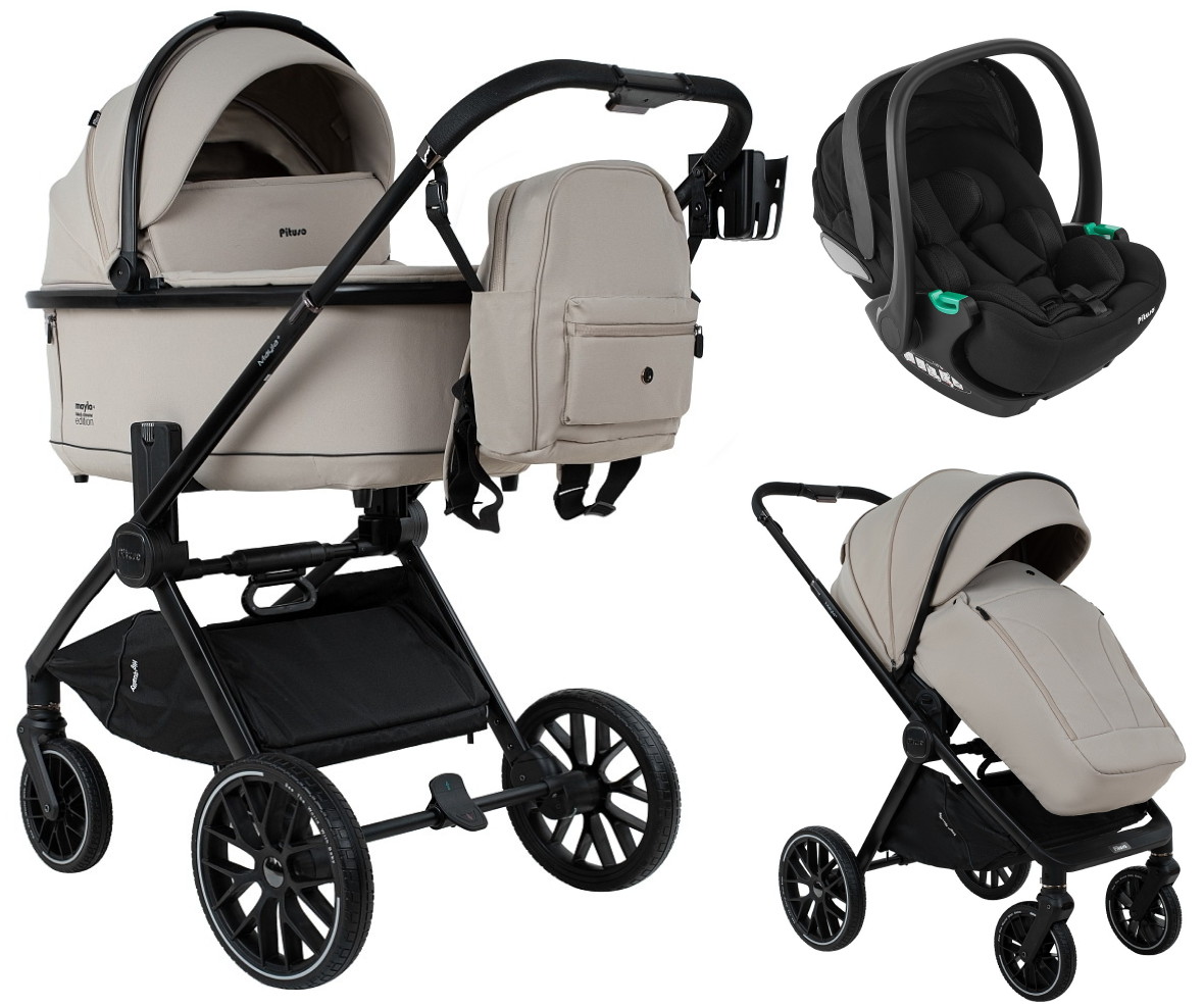 Детская коляска Pituso Mayla Plus 3 в 1 с автокреслом Baesa Black Beige/Black