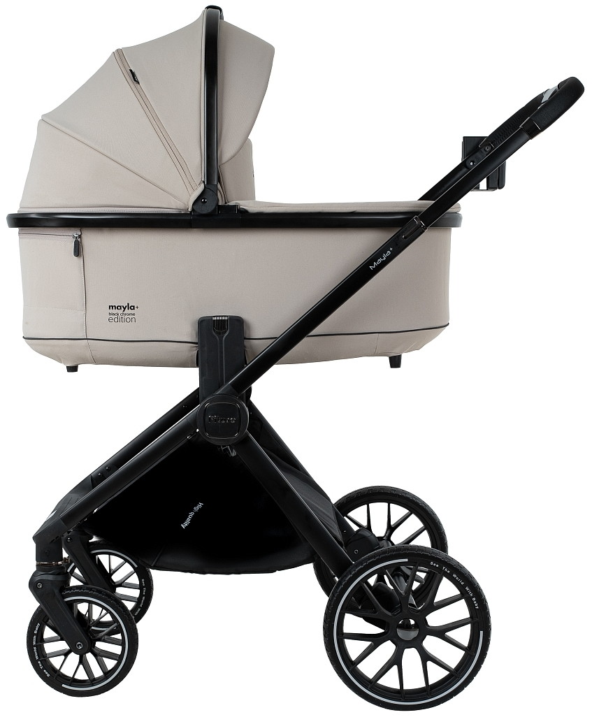 Высота установки люльки Pituso Mayla Plus меняется без усилий, позволяя любой маме удобно использовать коляску независимо от её роста. Спальный блок легко снимается с шасси благодаря кнопкам с эффектом памяти, а переносить его можно с помощью ручки на капюшоне.