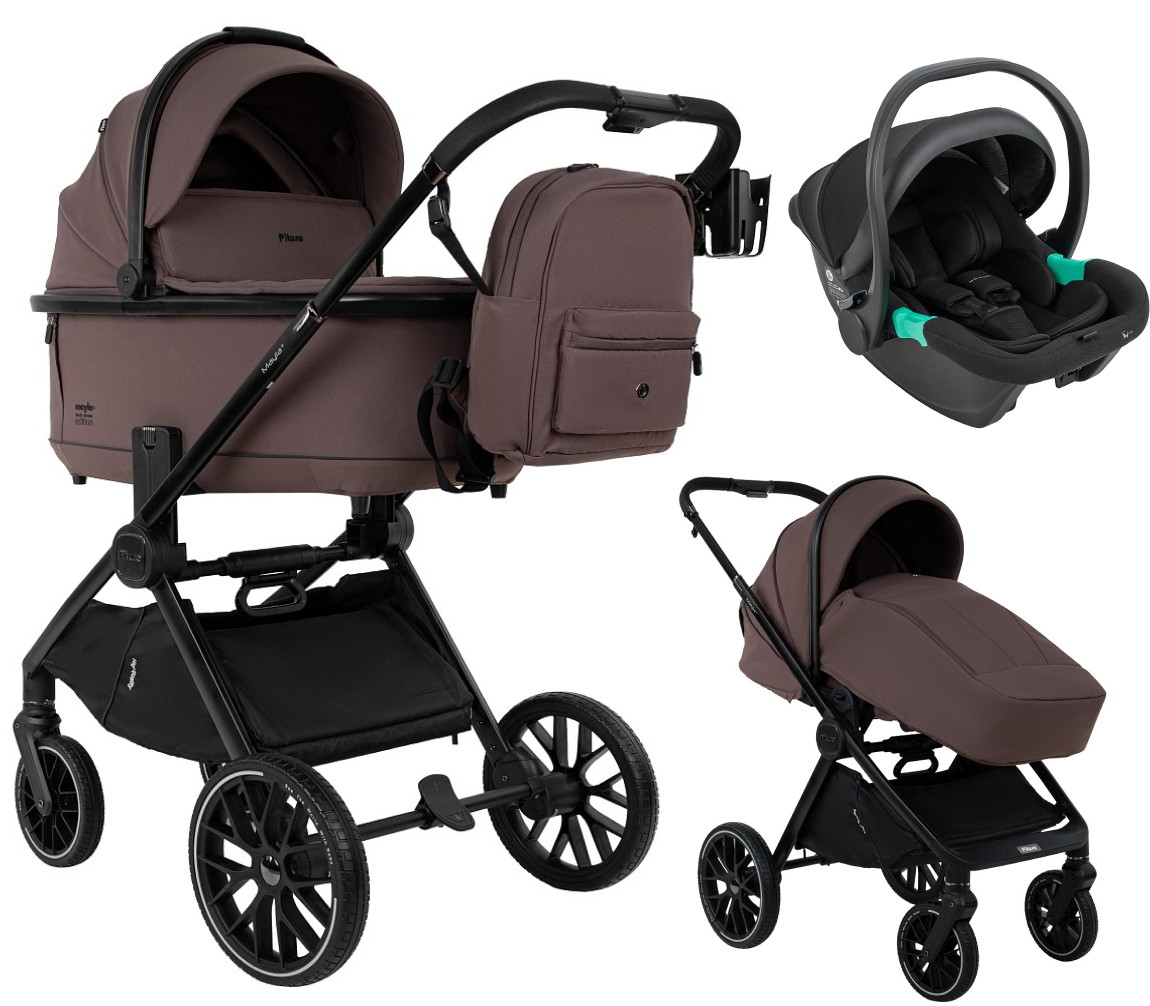 Детская коляска Pituso Mayla Plus 3 в 1 с автокреслом Santiso Pro Black Devine Cocoa/Black