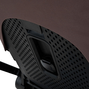 Капор прогулочного блока изменяет свою высоту, фиксируется в одном из трёх положений (разница между минимальной и максимальной высотой капа – 6 см). Кнопка-фиксатор расположена на внешней стороне спинки. Спинка выполнена из прочного гипоаллергенного пластика, с функцией проветривания. Кап оборудован дополнительной секцией под молнией, позволяющей увеличить его размер, смотровым окошком и съёмным козырьком.