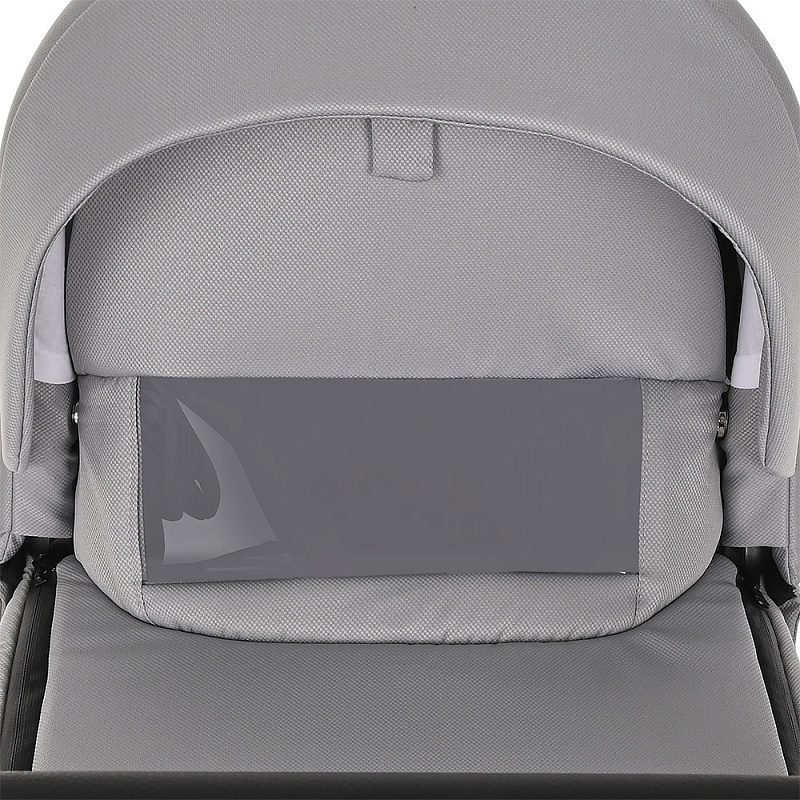 Для малыша с рождения на шасси устанавливается полноценная люлька (размеры по матрасику 76×35 см). Люльку можно снять одной рукой, нажимая на кнопки поочередно. В дополнительном сегменте в капюшоне есть вентиляционно-смотровое окошко. В капор встроена ручка для переноски, которая для удобства родителей имеет накладку из практичной эко-кожи. Защиту от ветра и холода обеспечивает накидка на ножки с отворотом, которая фиксируется с помощью магнита. Чехол люльки крепится с помощью кнопок. На чехле с двух сторон имеются молнии позволяющие не снимать чехол полностью для доступа к ребенку. Высокий отворот защищающий от ветра и смотровое окошко для зрительного контакта мамы с ребенком.