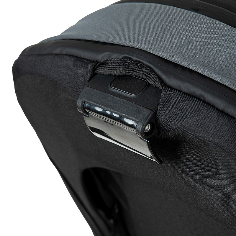 Безопасность обеспечивается пятиточечными ремнями с магнитным замком и откидным бампером.