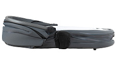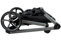 Рама складывается "книжкой" одним легким движением. Складывание возможно вместе с прогулочным блоком, независимо от того, каким способом он установлен. В сложенном виде коляска становится компактной, ее легко поместить в багажник или переносить с помощью транспортного ремня.