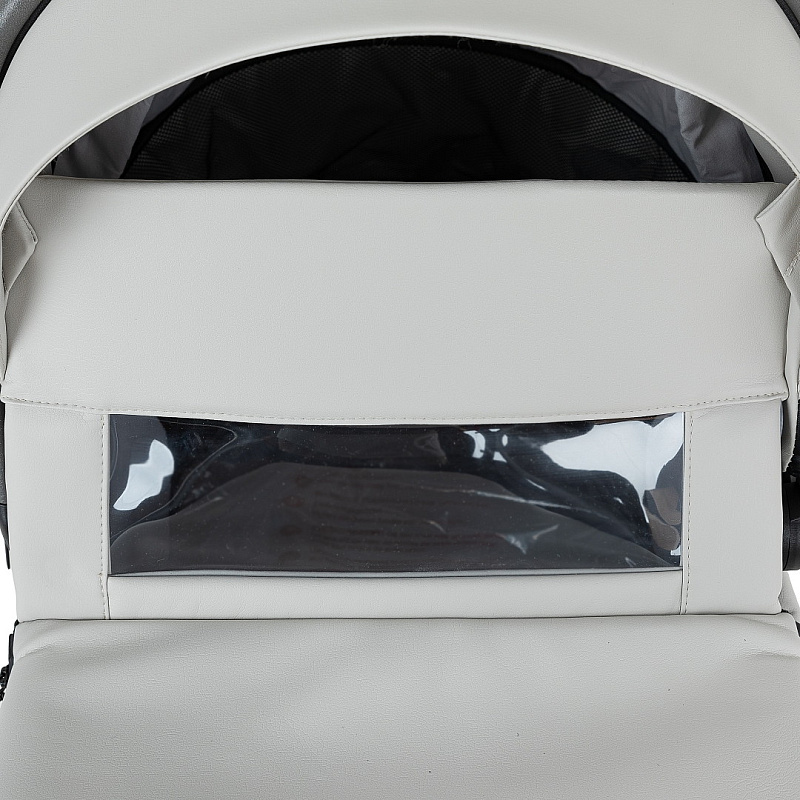 Оснащена эргономичной ручкой, встроенной в капюшон и обтянутой экокожей. С ее помощью спящего малыша вы сможете переносить без проблем