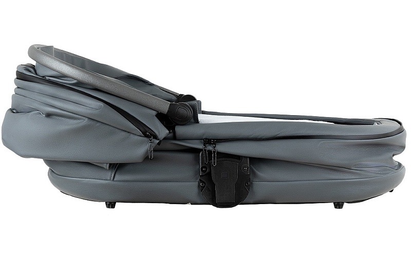 Рама складывается "книжкой" одним легким движением. Складывание возможно вместе с прогулочным блоком, независимо от того, каким способом он установлен. В сложенном виде коляска становится компактной, ее легко поместить в багажник или переносить с помощью транспортного ремня.