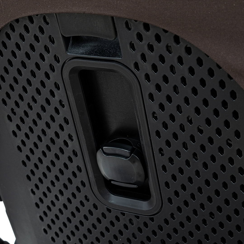Капор прогулочного блока изменяет свою высоту, фиксируется в одном из трёх положений (разница между минимальной и максимальной высотой капа – 6 см). Кнопка-фиксатор расположена на внешней стороне спинки. Спинка выполнена из прочного гипоаллергенного пластика, с функцией проветривания. Кап оборудован дополнительной секцией под молнией, позволяющей увеличить его размер, смотровым окошком и съёмным козырьком.