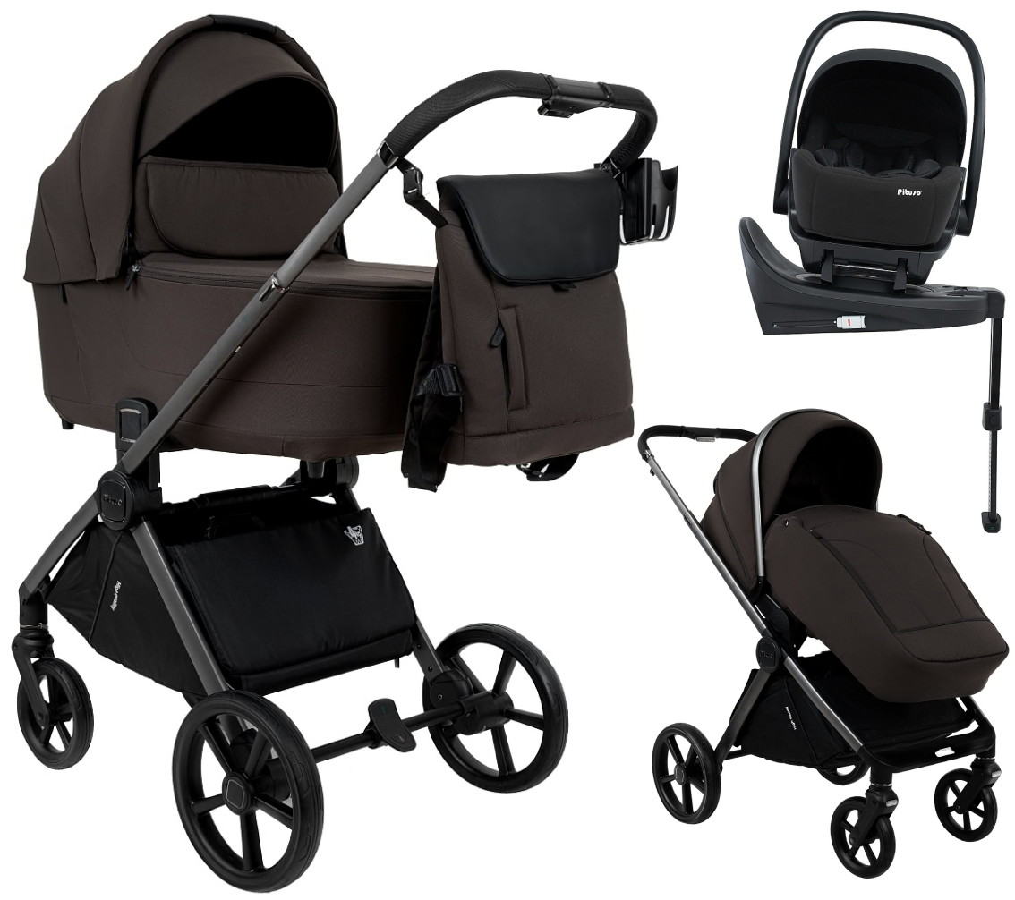 Детская коляска Pituso Teffy 4 в 1 с автокреслом Baesa Black с базой Turkish Coffee/Graphite