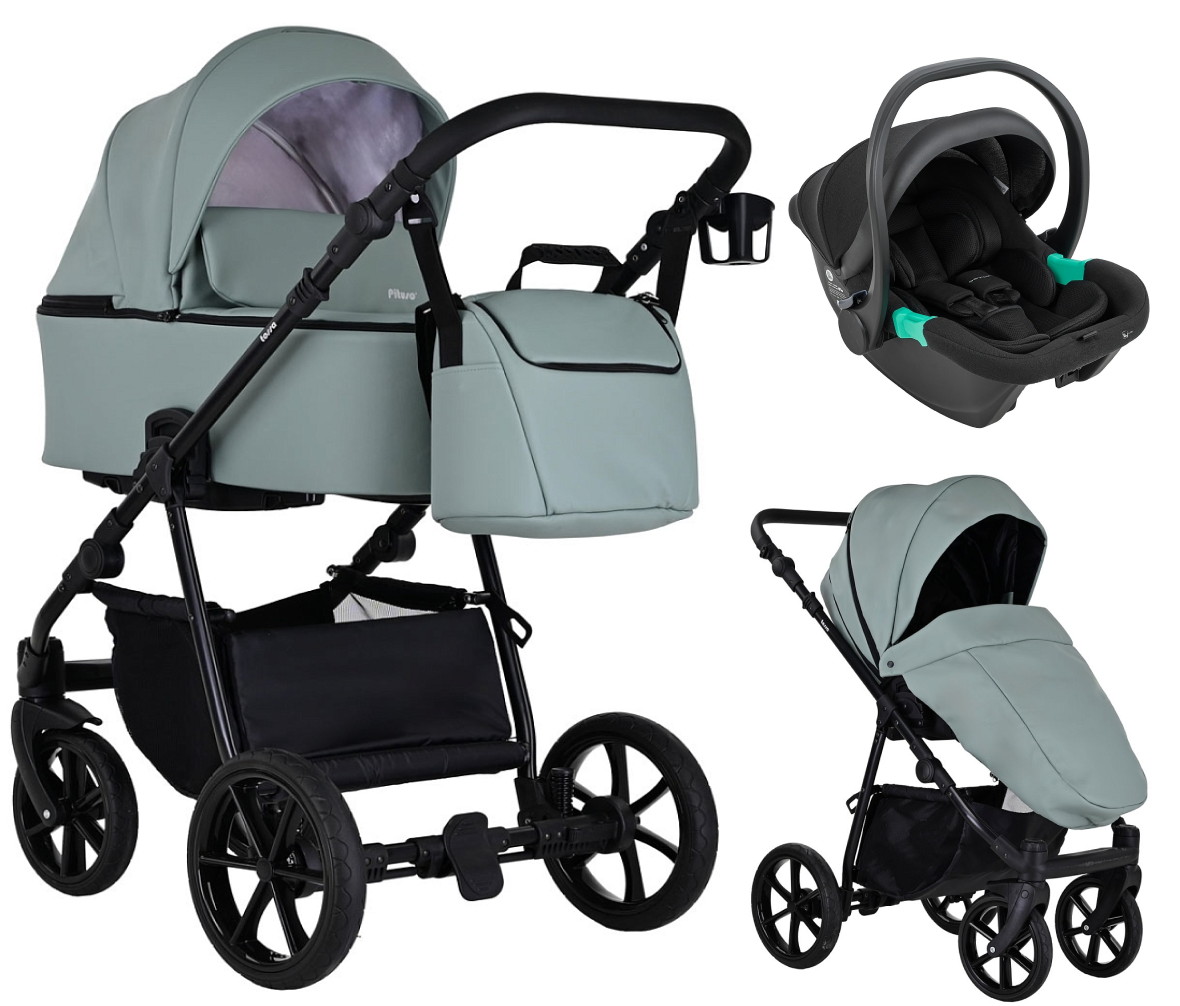 Детская коляска Pituso Tossa Кожа 3 в 1 с автокреслом Santiso Pro Black TS/25/2 Sage