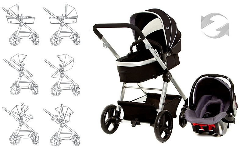 Горизонтальная люлька трансформируется в удобное сиденье, когда малыш подрастет