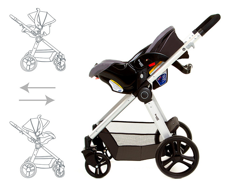В комплекте удобная переноска для новорожденного, которая может крепиться на раме