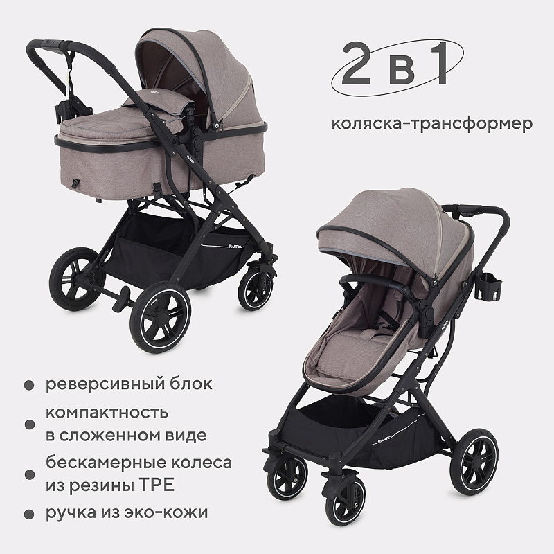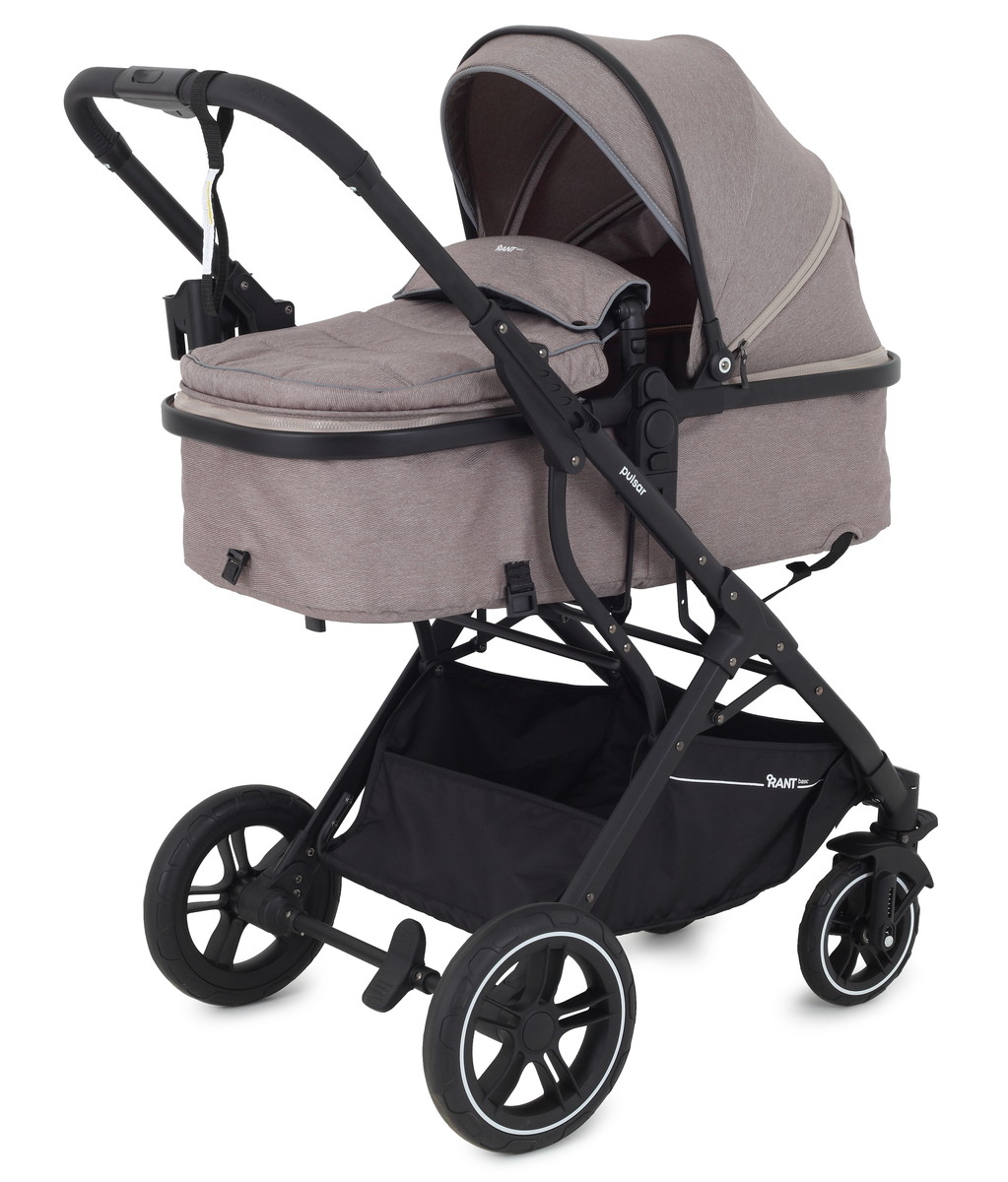 Детская коляска-трансформер Rant basic Pulsar - эргономичная и вместительная! Особенности модели: трансформация в два движения; реверсивный блок; подстаканник для любимых напитков; тормоз-"качелька", не пачкающий обувь.