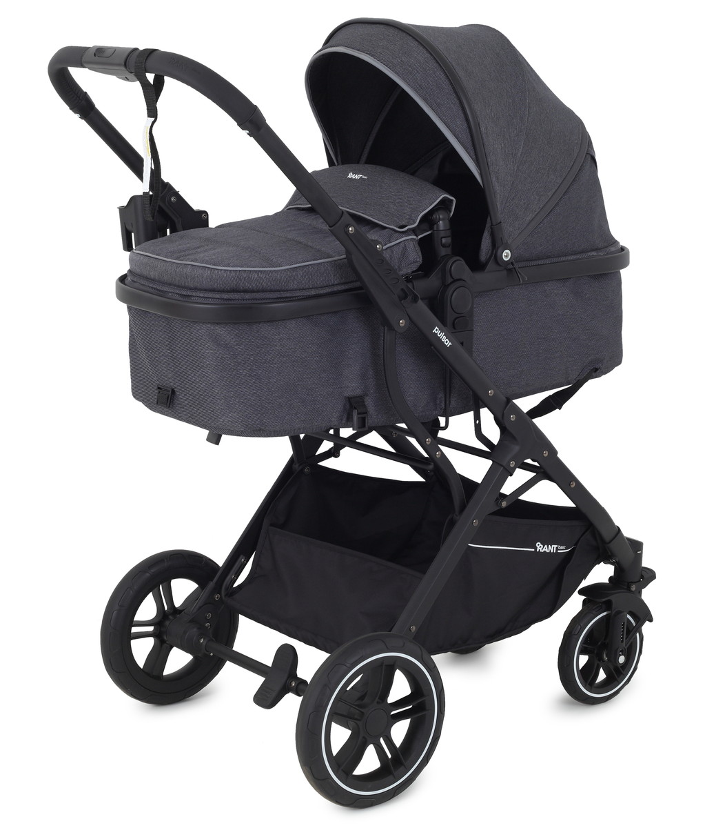 Детская коляска-трансформер Rant basic Pulsar - эргономичная и вместительная! Особенности модели: трансформация в два движения; реверсивный блок; подстаканник для любимых напитков; тормоз-"качелька", не пачкающий обувь.
