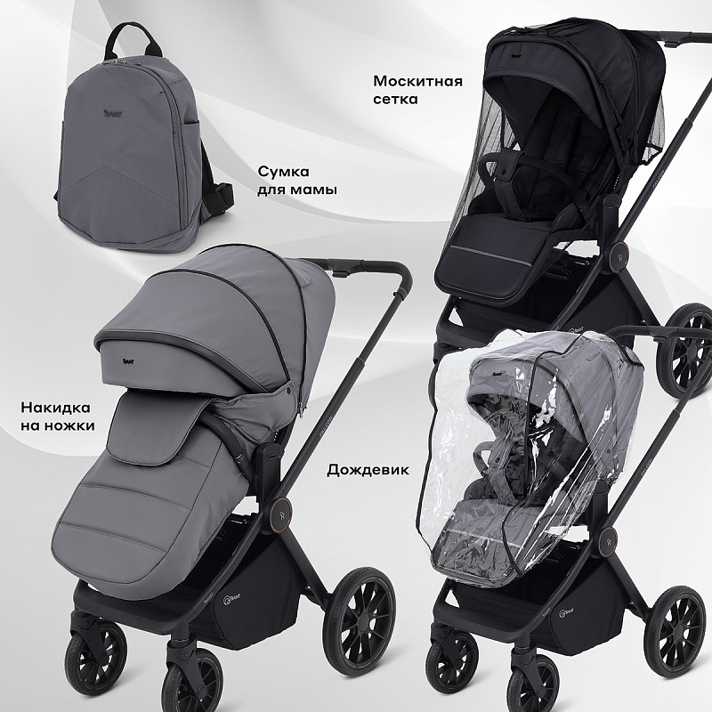 богатая комплектация: стильный рюкзачок для мамы, дождевик, москитная сетка