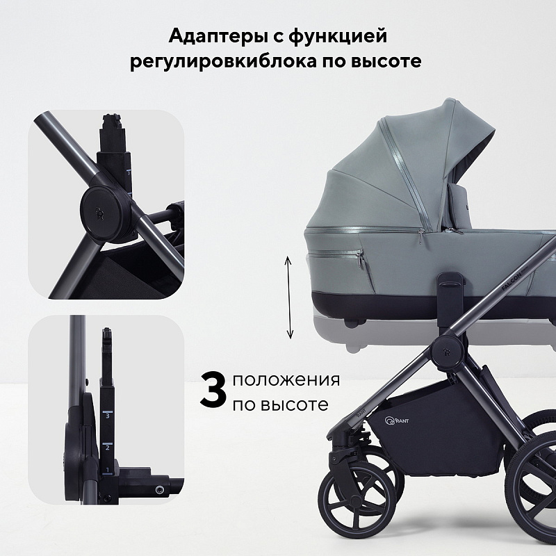 Регулировку высоты люльки и прогулочного блока, позволяющую адаптировать коляску под ваш рост. Простая регулировка без использования дополнительных инструментов.
