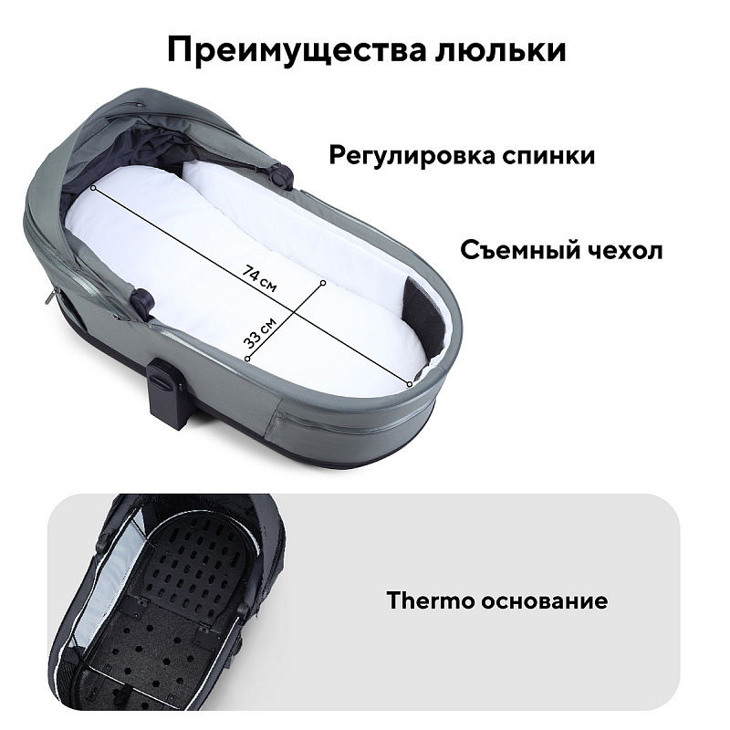 Термолюльку с облегченным дном из специального материала. Легкость установки и переноски, возможность использования в качестве временной кроватки. Термодно создает оптимальный микроклимат для ребенка в любое время года: летом – прохладу и циркуляцию воздуха, зимой – защиту от холода и сохранение тепла. Прочное дно гарантирует безопасность во время прогулок.