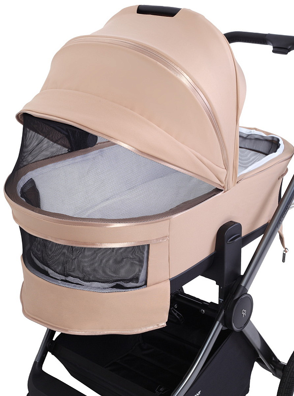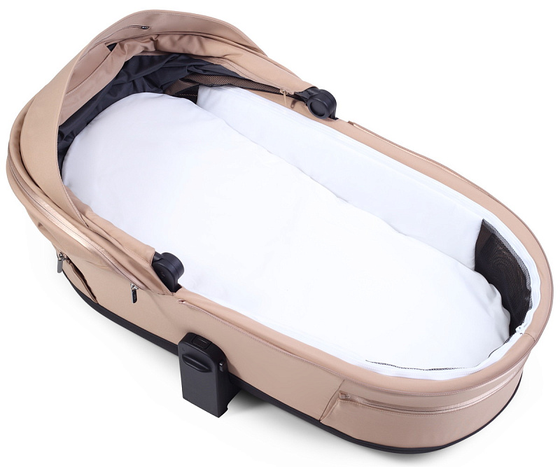 Коляска комплектуется двумя сменными блоками: люлькой для младенца и прогулочным блоком. На раму коляски можно легко установить автокресло группы 0+ для новорожденных, что сделает ваши поездки с ребенком еще более комфортными и безопасными.