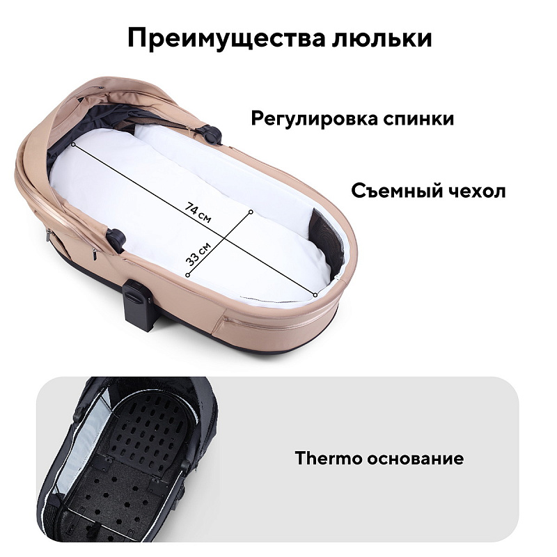 Термолюльку с облегченным дном из специального материала. Легкость установки и переноски, возможность использования в качестве временной кроватки. Термодно создает оптимальный микроклимат для ребенка в любое время года: летом – прохладу и циркуляцию воздуха, зимой – защиту от холода и сохранение тепла. Прочное дно гарантирует безопасность во время прогулок.