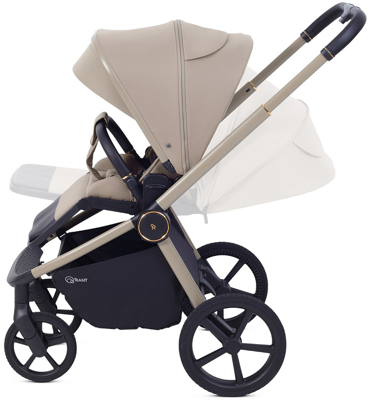 Модульность: в комплекте — люлька для новорождённого и прогулочный блок. Оба блока легко снимаются и устанавливаются. На раму возможно установить автокресло группы 0+ (адаптация без лишних усилий), что делает поездки более удобными и безопасными.