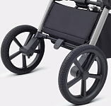 Супермягкая амортизация: коляска «плывёт по дороге», помогая продлить сон ребёнка на улице и делая управление лёгким и приятным.