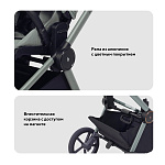 Модульность: в комплекте — люлька для новорождённого и прогулочный блок. Оба блока легко снимаются и устанавливаются. На раму возможно установить автокресло группы 0+ (адаптация без лишних усилий), что делает поездки более удобными и безопасными.