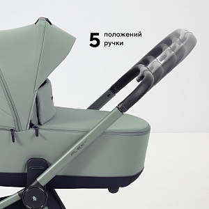 удобная ручка-переноска регулируется в 4 положениях. В нижнем положении ручка выступает стопором, предотвращающим укачивание.