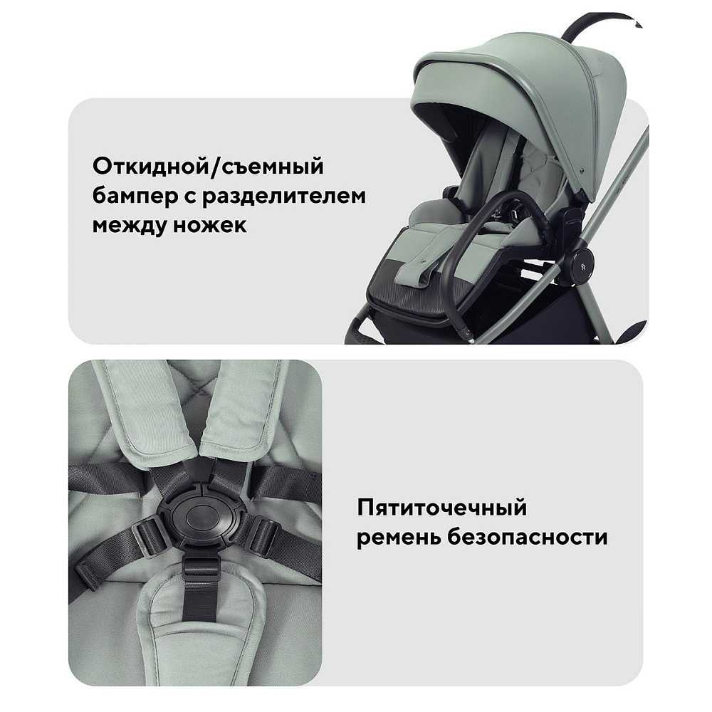 Модульность: в комплекте — люлька для новорождённого и прогулочный блок. Оба блока легко снимаются и устанавливаются. На раму возможно установить автокресло группы 0+ (адаптация без лишних усилий), что делает поездки более удобными и безопасными.