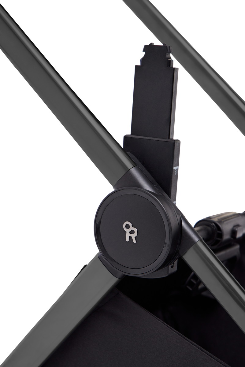 автолюльку можно закрепить на базе коляски с помощью адаптеров. Аксессуар легко и быстро снимается одной рукой с базы коляски благодаря кнопкам памяти.
