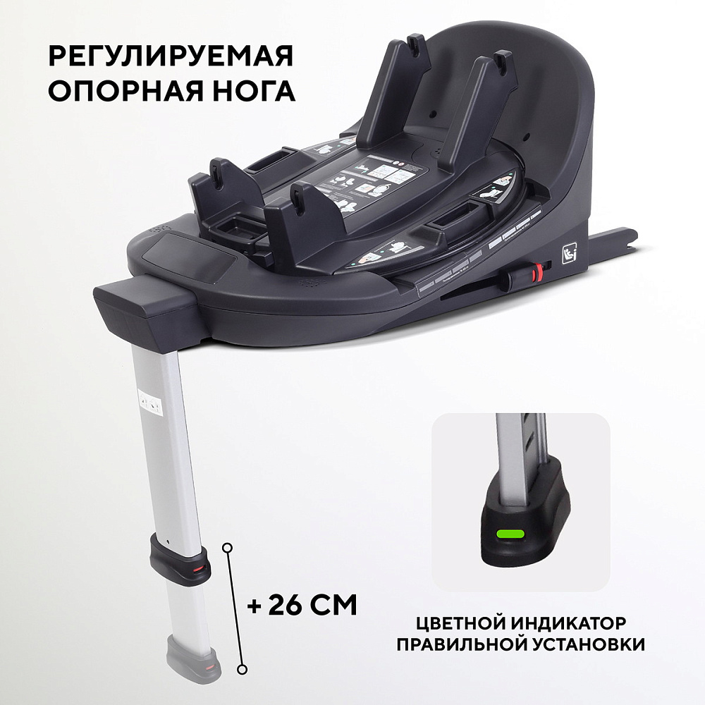 для надежной фиксации автолюльки дополнительно можно приобрести базу isofix с телескопической опорной ногой, увеличивающей устойчивость