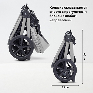 Модульность: в комплекте — люлька для новорождённого и прогулочный блок. Оба блока легко снимаются и устанавливаются. На раму возможно установить автокресло группы 0+ (адаптация без лишних усилий), что делает поездки более удобными и безопасными.