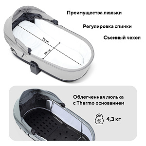 Термолюлька: дно выполнено из специального материала — лёгкое, прочное и термоизолирующее. Обеспечивает комфорт в любую погоду: летом не перегревается, сохраняет циркуляцию воздуха; зимой сохраняет тепло. Подойдёт как для прогулок, так и как временная кроватка при посещении гостей.