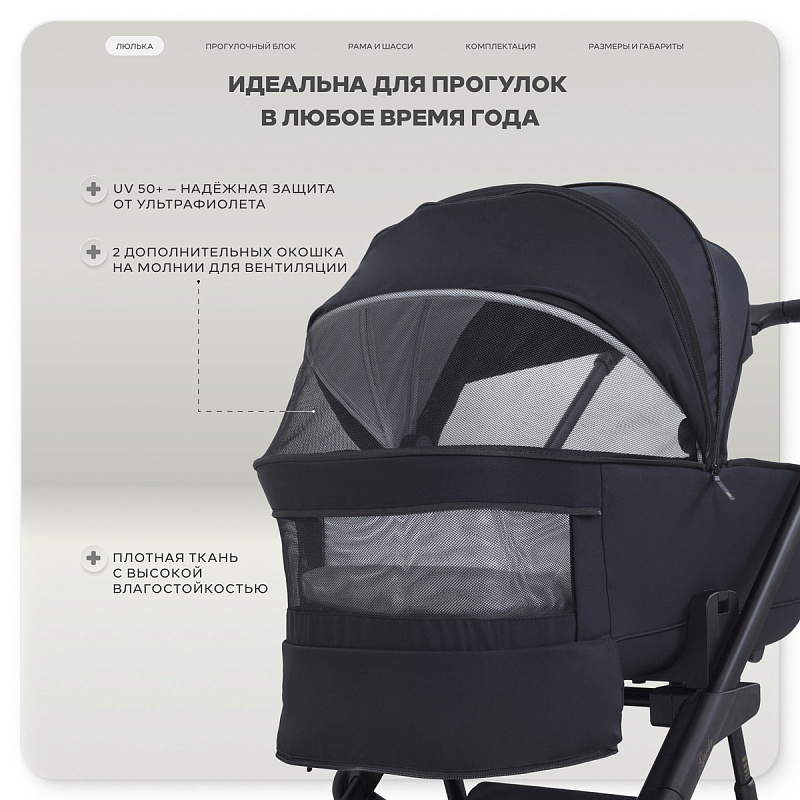 облегченная люлька выполнена по технологии thermо. Особый материал, из которого создано основание, идеально поддерживает микроклимат внутри: на улице жарко - в люльке прохладно, на улице холодно - в люльке тепло. В то же время высокотехнологичный композитный материал характеризуется легким весом и ударопрочностью.