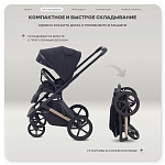 компактное и быстрое складывание прогулочного блока вместе с рамой. Сложенная таким образом коляска устойчиво стоит в вертикальном положении, что облегчает хранение и транспортировку.