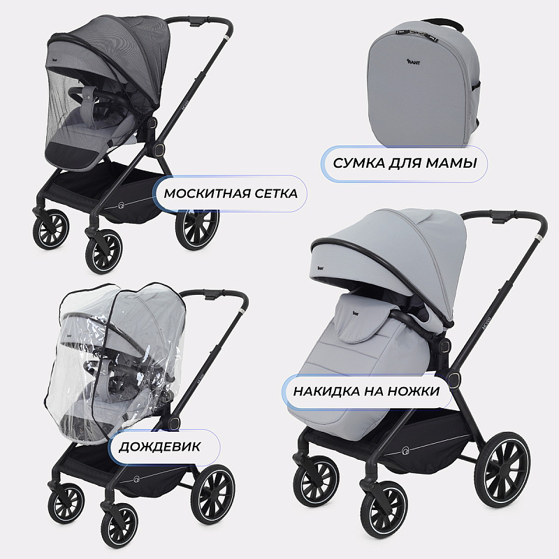 - модель дополнена богатой комплектацией: стильным рюкзаком для мамы, москитной сеткой, дождевиком