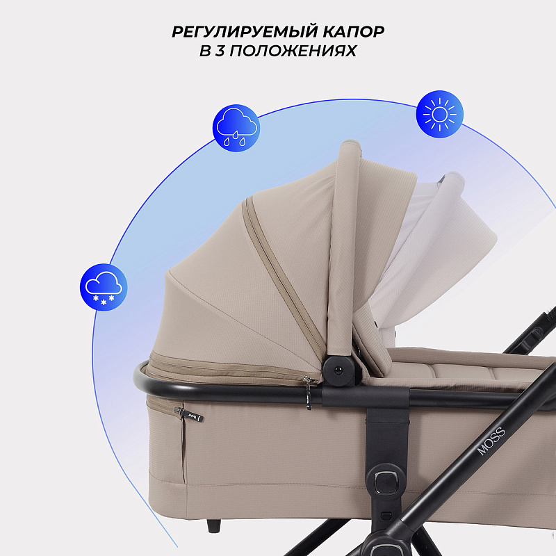 модель дополнена богатой комплектацией: стильным рюкзаком для мамы, москитной сеткой, дождевиком