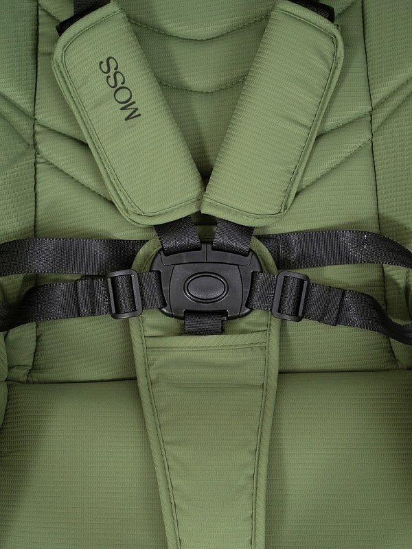 3-точечные ремни обеспечат полную безопасность, а плечевые накладки не дадут выскользнуть малышу при ударе