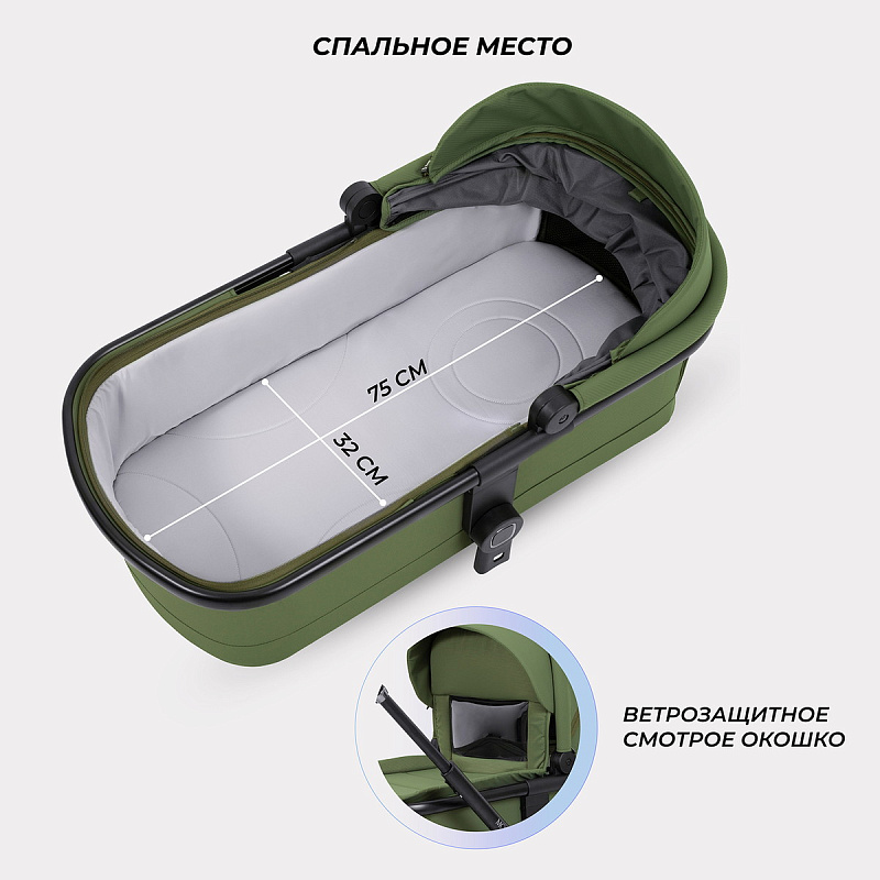 модель дополнена богатой комплектацией: стильным рюкзаком для мамы, москитной сеткой, дождевиком