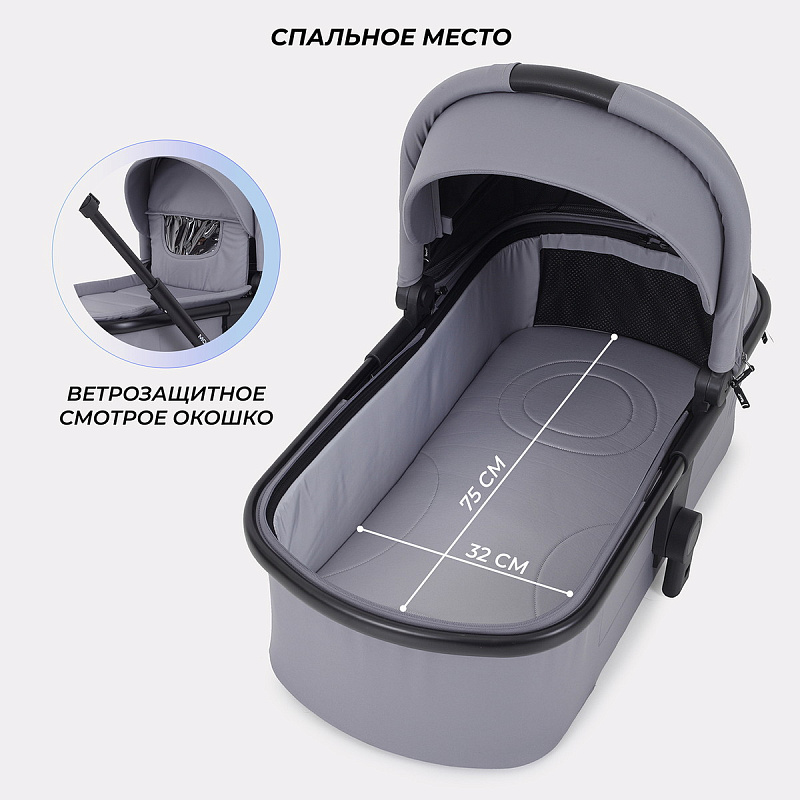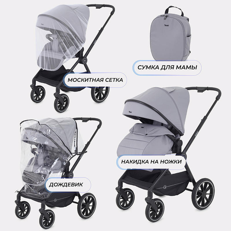 модель дополнена богатой комплектацией: стильным рюкзаком для мамы, москитной сеткой, дождевиком