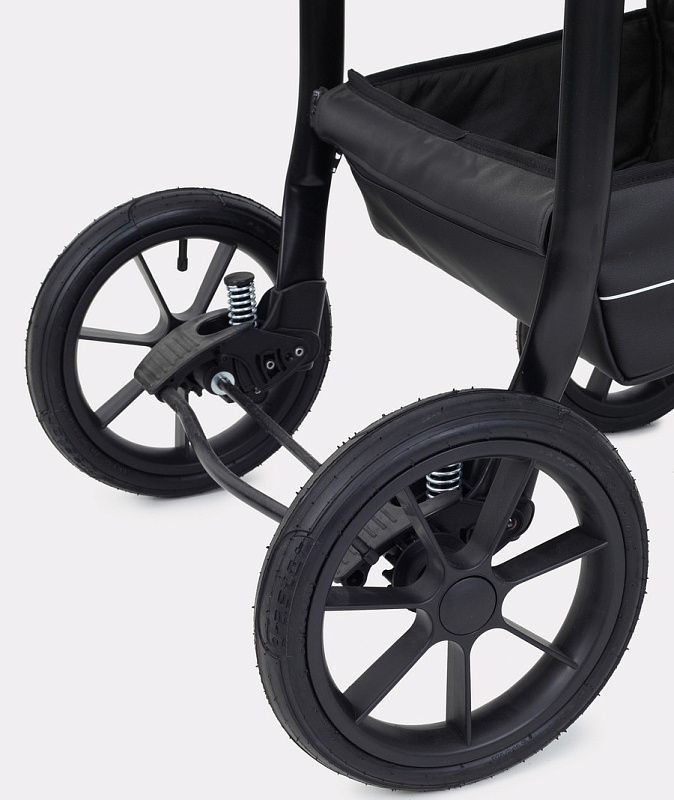 Производитель гордится дизайном с изящными вставками из экокожи. Благодаря пропитанной специальными материалами ткани коляска выдержит любую непогоду. Ручка с регулируемым углом наклона мгновенно подстроится под любой рост. Корзина не пачкается во время движения, находясь на достаточной высоте от дороги. Колеса надувные, с мягкой амортизацией. Коляска Patio комплектуется сумкой для мамы и дождевой накидкой.