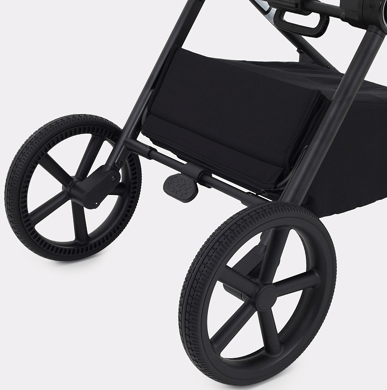коляска дополнена функцией автоскладывания - просто нажмите кнопку и слегка подтолкните подножку в обратную сторону. Модель складывается автоматически сразу вместе с блоком, независимо от его положения (по ходу/против хода).