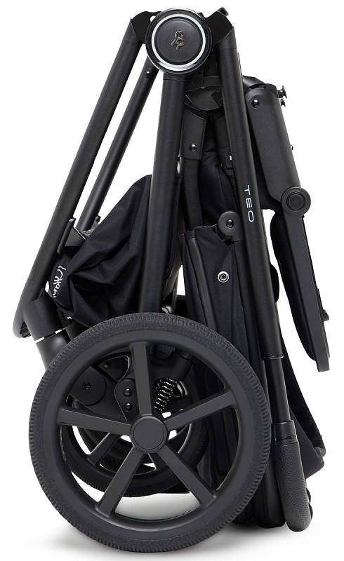 коляска дополнена функцией автоскладывания - просто нажмите кнопку и слегка подтолкните подножку в обратную сторону. Модель складывается автоматически сразу вместе с блоком, независимо от его положения (по ходу/против хода).