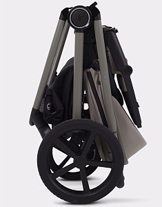 коляска дополнена функцией автоскладывания - просто нажмите кнопку и слегка подтолкните подножку в обратную сторону. Модель складывается автоматически сразу вместе с блоком, независимо от его положения (по ходу/против хода).