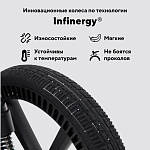 абсолютная инновация модели - материал колес, выполненный по технологии Infinergy®. Это новейшая разработка, представляющая собой вспененный термополиуретан (E-TPU). Новый материал колес характеризуется: легкостью - коляска стала весить еще меньше; невероятными амортизирующими свойствами - ход еще мягче, поглощение ударов еще эффективнее; максимальной долговечностью - E-TPU проколоустойчив, а также отличается высокой стойкостью к деформации, поэтому моментально самовосстанавливается даже после сложного ландшафта; устойчивостью к любым погодным условиям - материал не потеряет свои свойства при любой температуре.