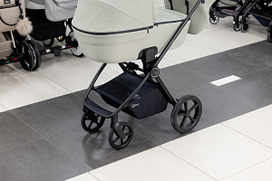 коляска дополнена функцией автоскладывания - просто нажмите кнопку и слегка подтолкните подножку в обратную сторону. Модель складывается автоматически сразу вместе с блоком, независимо от его положения (по ходу/против хода).