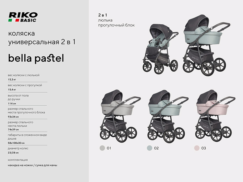 Детская коляска Riko Basic Bella Pastel 2 в 1 02 ментоловый