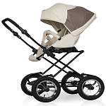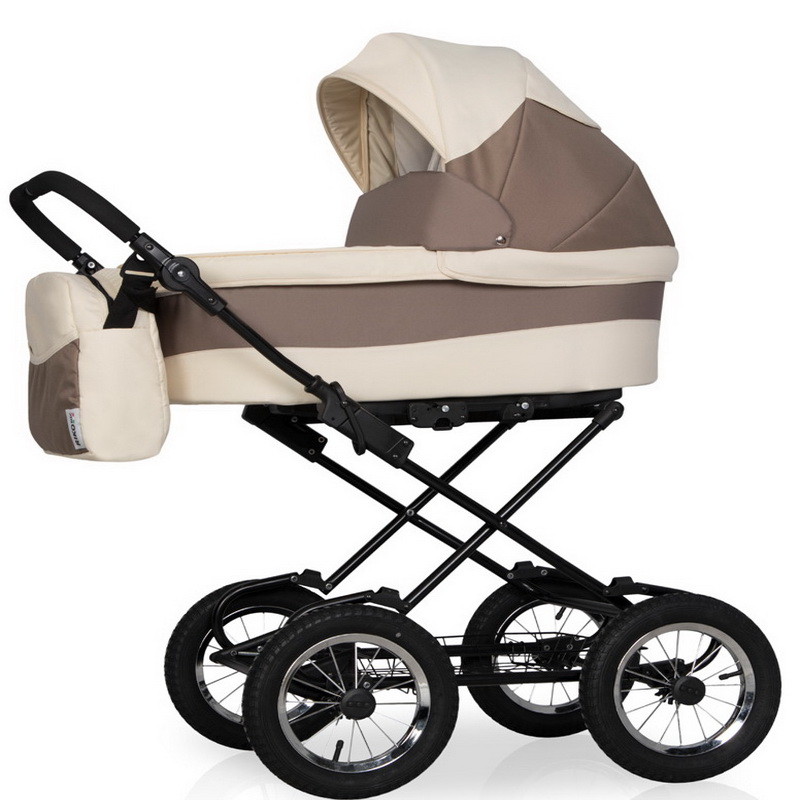 Коляска 2 в 1 на лёгкой алюминиевой раме. Есть большая корзина для покупок. Сумка для мамы прикрепляется к родительской ручке. Модель компактно складывается. Прочные колёса с высокой проходимостью. Центральный стояночный тормоз ножного типа с двумя педалями.