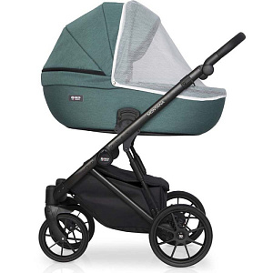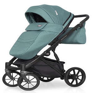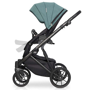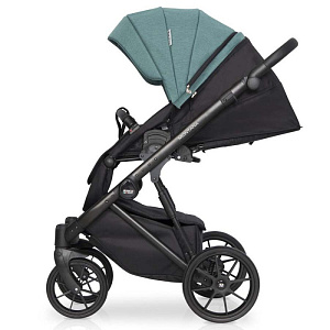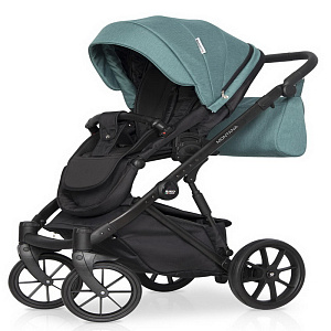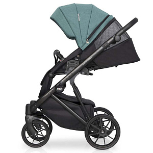 Коляска 2 в 1 на лёгкой алюминиевой раме. Есть большая корзина для покупок. Сумка для мамы прикрепляется к родительской ручке. Модель компактно складывается. Инновационные колёса обеспечивают более мягкую амортизацию. Передние поворотные колёса можно блокировать при движении по прямой. Центральный ножной тормоз.