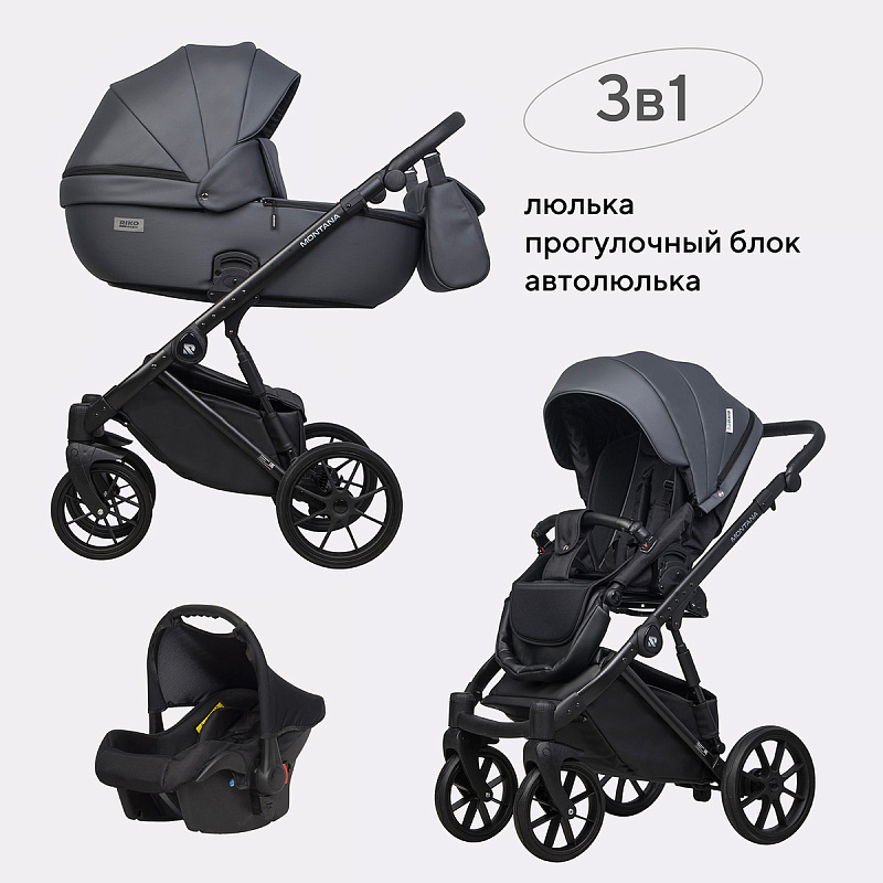 Детская коляска Riko Basic Montana Ecco 3 в 1 24 Graphite